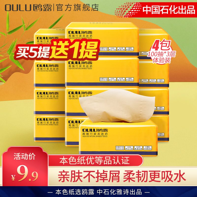 鸥露竹浆抽纸家用整箱实惠装餐巾纸欧露旗舰店官网本色卫生纸28包