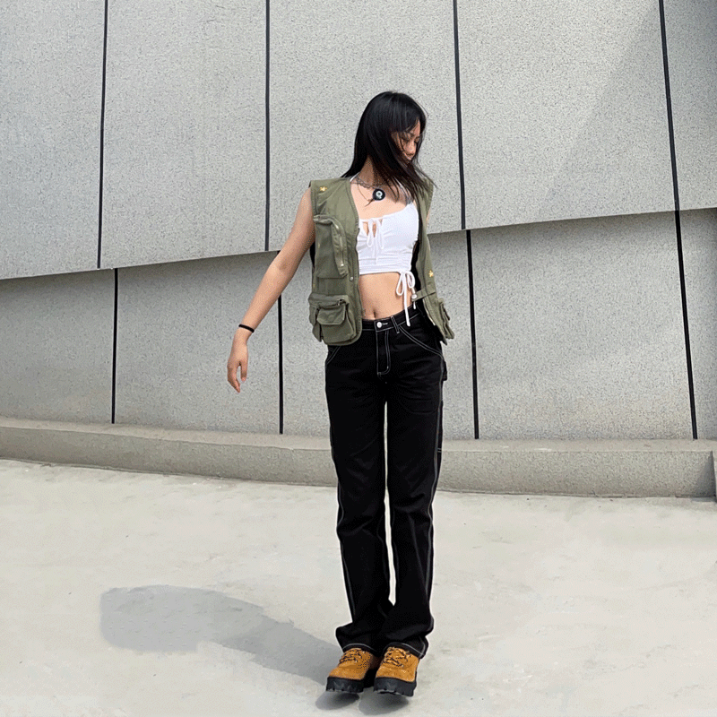 FOT 比伯同款CH做旧工艺水洗四季款工装裤外走线设计中腰宽松显瘦热门设计联盟服务商
