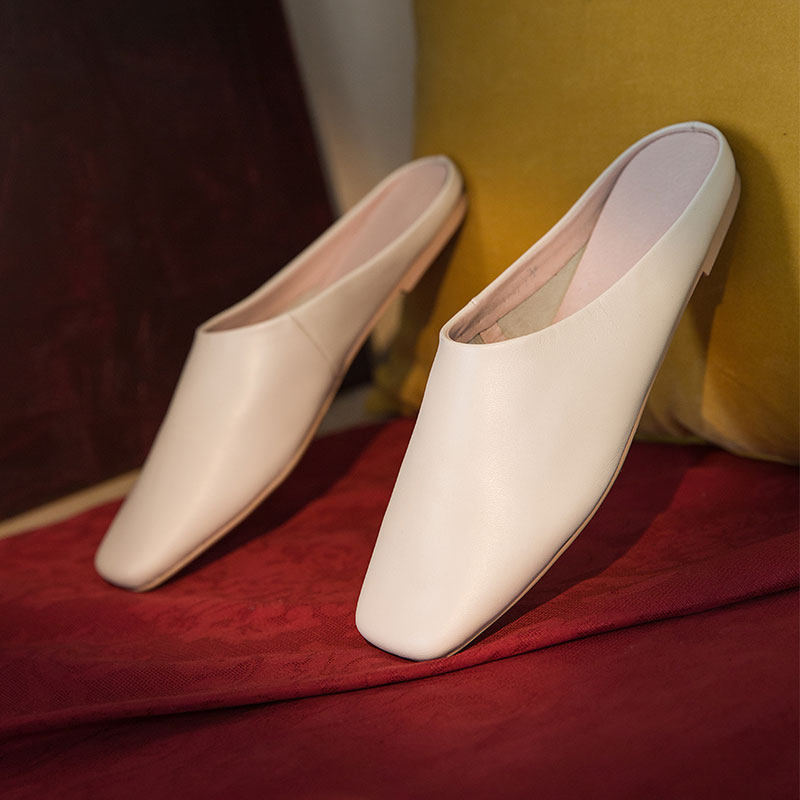 强推~~巨软 羊皮半拖鞋 平底显瘦真皮包头拖鞋女外穿 室外懒人鞋热门设计联盟服务商