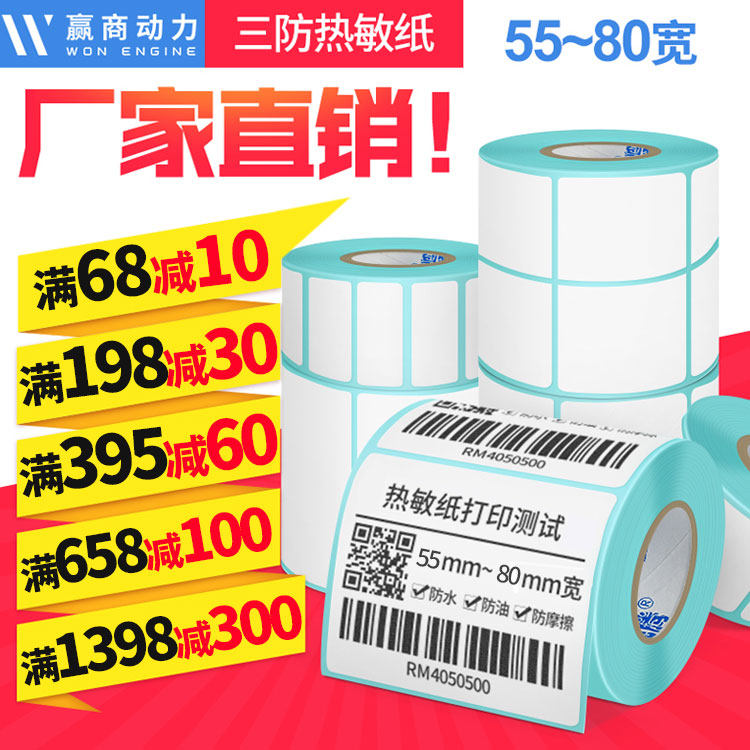 赢商三防热敏标签纸不干胶打印条码55/60/70/80mm宽纸空白防水奶茶店超市价格贴纸药店纸商品菜鸟驿站E邮宝热门设计联盟服务商