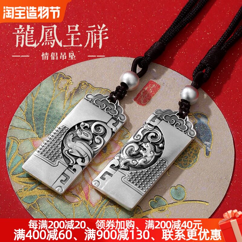 汉风仿古祥云方牌吊坠纯银男士女款项链复古个性小众设计情侣热门设计联盟服务商