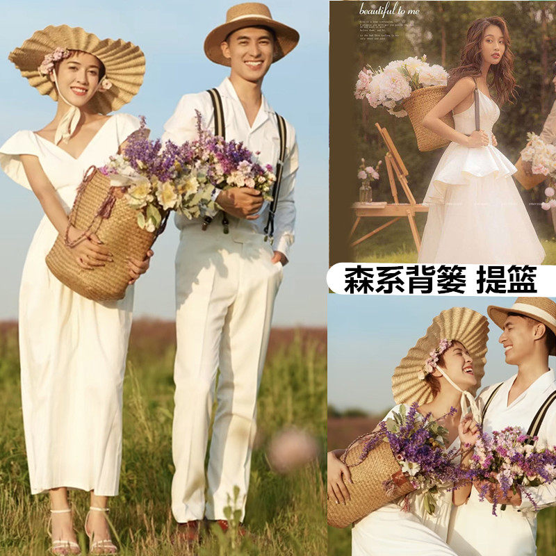 婚纱外景拍照背篓法式复古田园草编手提花篮新款画架影楼摄影道具热门设计联盟服务商