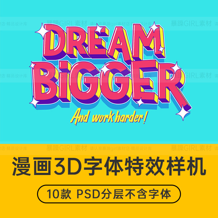 精选PS二次元卡通漫画3D立体POP海报标题字体特效样机PSD设计素材热门设计联盟服务商