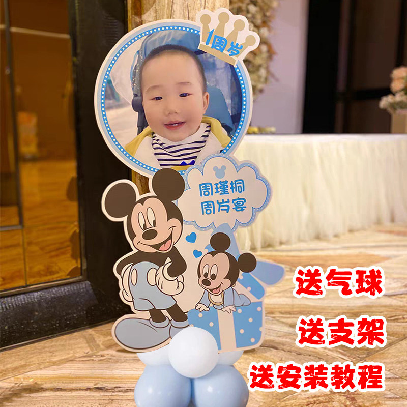 宝宝生日照片指示牌气球布置场景装饰创意设计定制异形迎宾牌路引热门设计联盟服务商