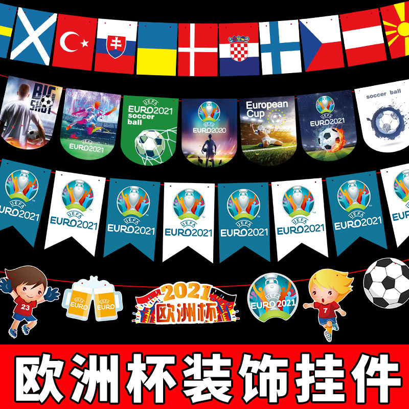 2021欧洲杯装饰品挂件酒吧宣传品体彩店竞彩商场布置串旗拉旗挂饰热门设计联盟服务商