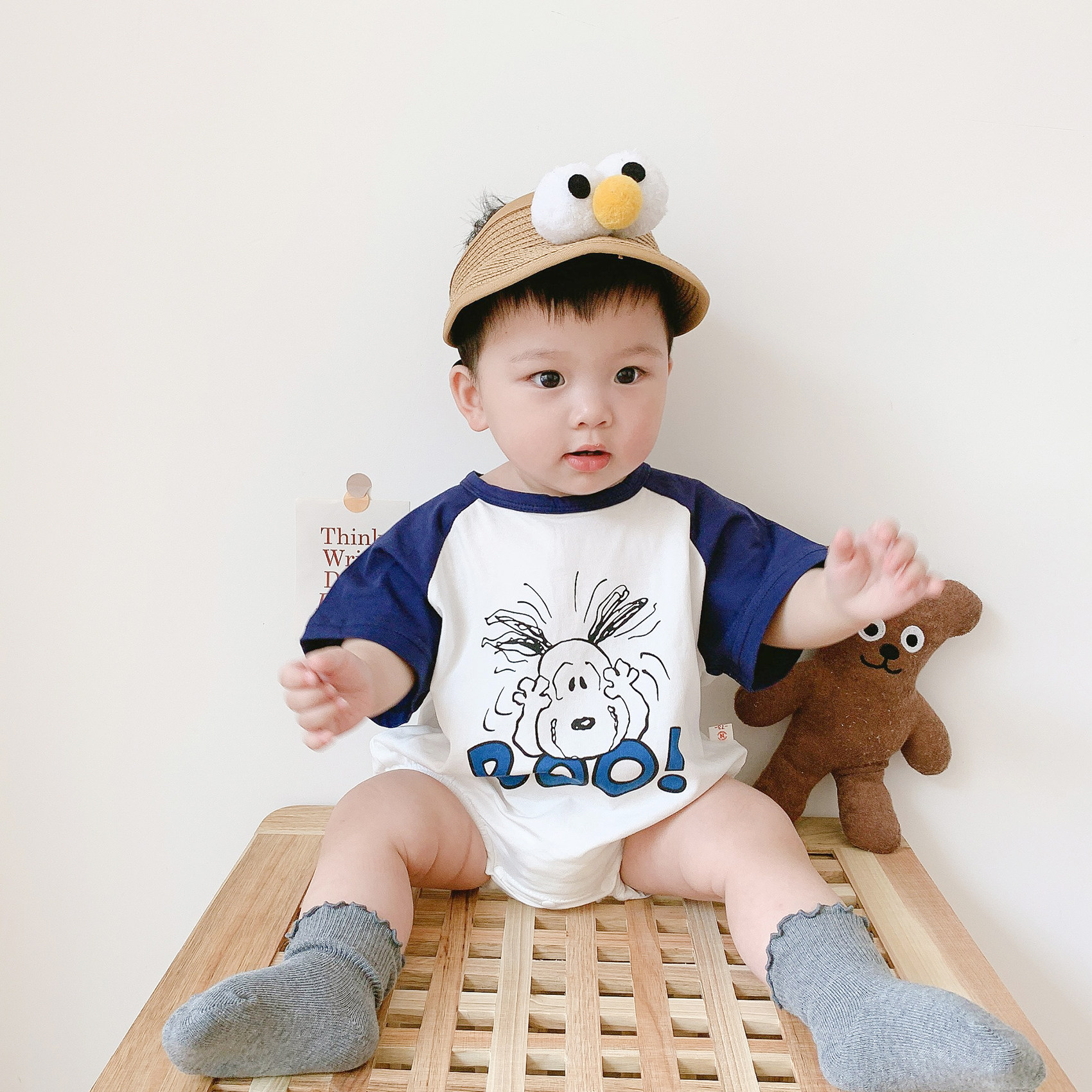 韩版婴儿夏装短袖爬服新生儿夏季卡通撞色包屁衣宝宝三浸衣洋气热门设计联盟服务商