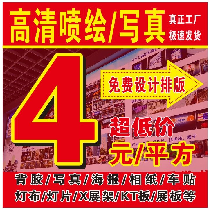 喷绘布制作广告设计背胶海报灯箱片定制kt板无胶pp纸车贴定做热门设计联盟服务商