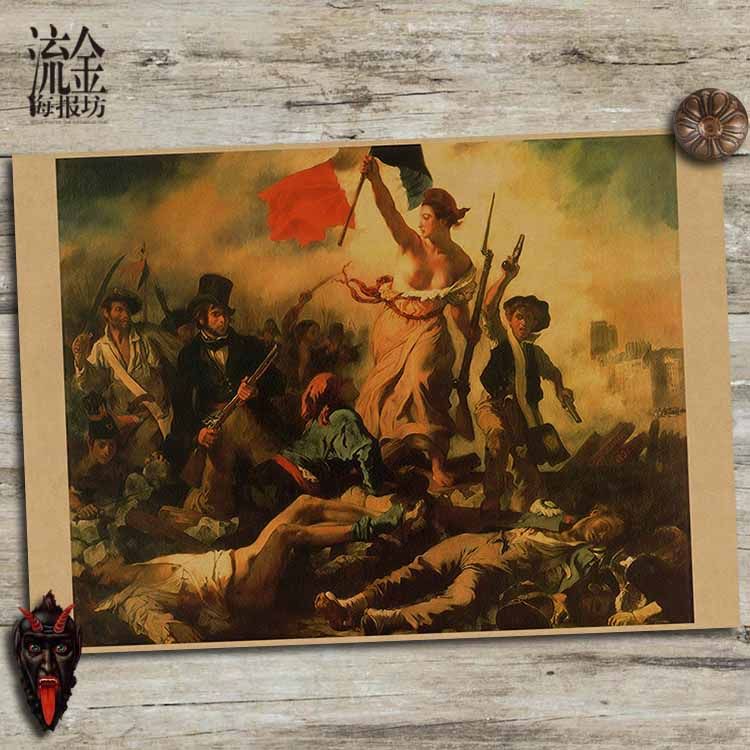自由引导人民 巴黎公社海报复古文艺牛皮纸画挂画壁画画芯热门设计联盟服务商
