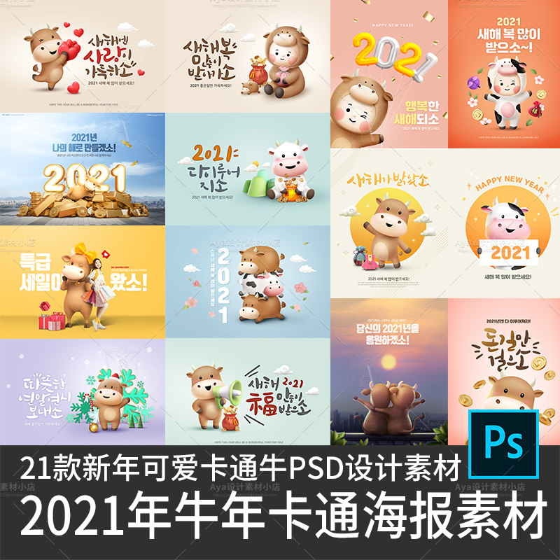 21款2021年牛年新年新春可爱卡通牛仔形象海报设计素材PSD海报热门设计联盟服务商