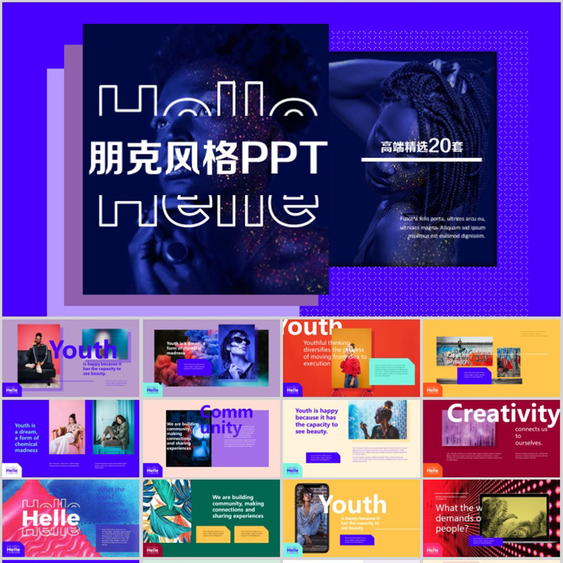 ppt模板高端时尚欧美创意朋克风个性艺术潮流课件设计素材热门设计联盟服务商