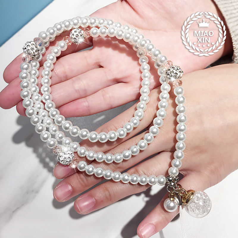 可爱创意手机挂绳珍珠绳子水晶链手机挂脖长绳手机挂饰女款包邮热门设计联盟服务商